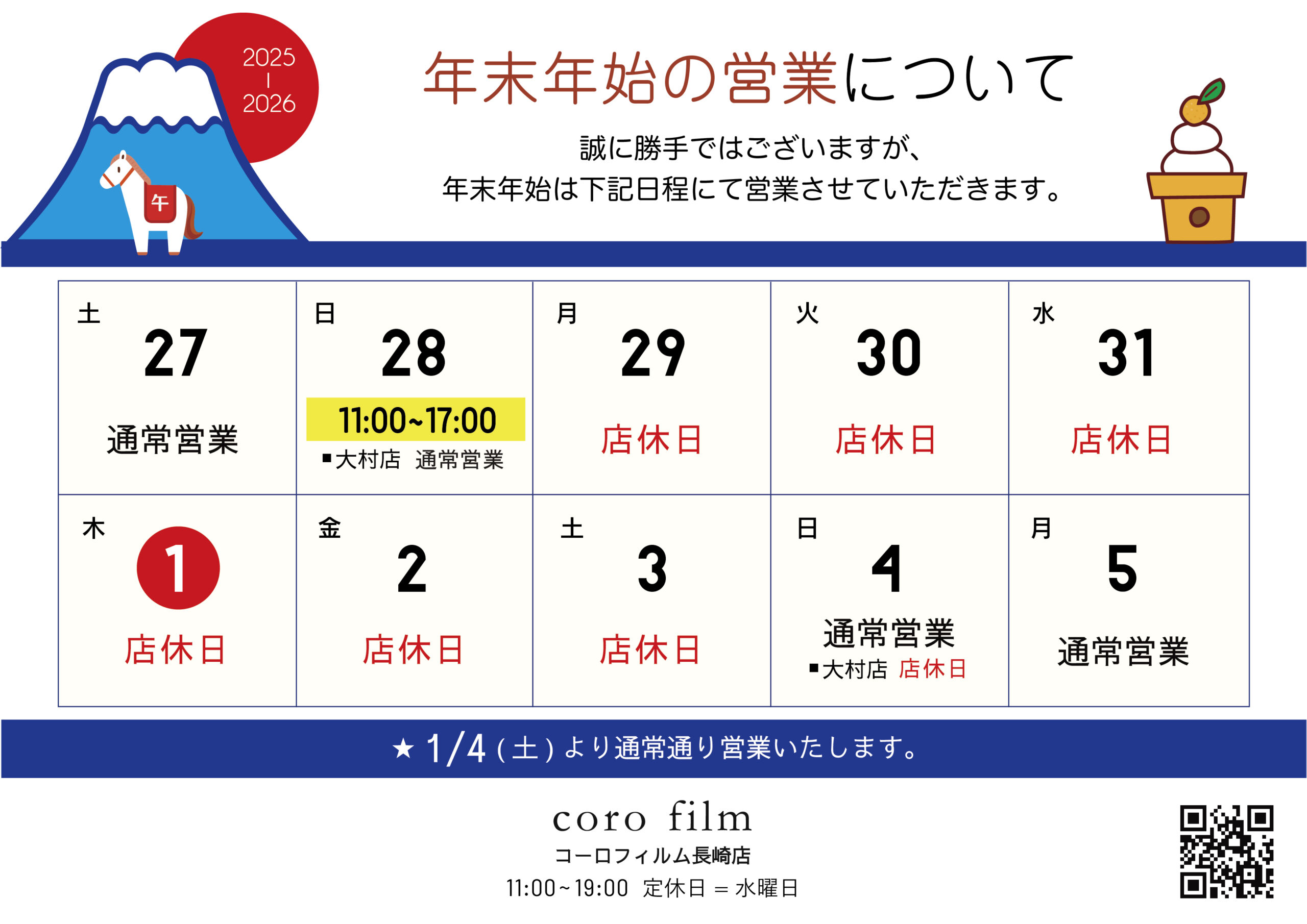 2026 年は1/4から営業します。